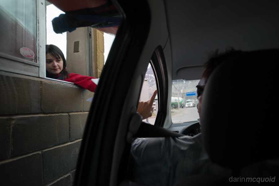In town we make a quick stop