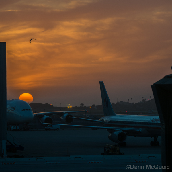 Natural flight at sunset in San Francisco.