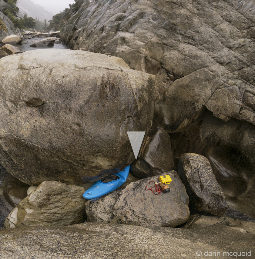 pinned bow down where the arrow is pointing. The kayak remained stable