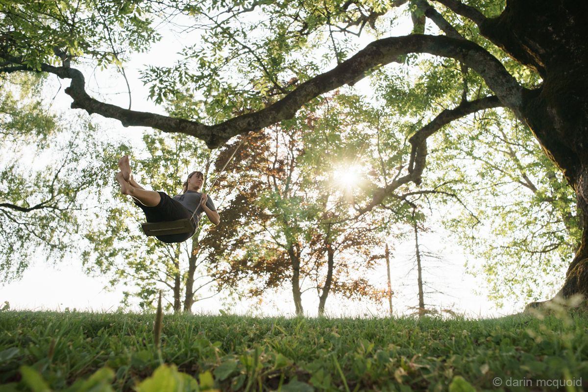 Shannamar Dewey swinging from the second oldest tree of its kind in Norway.