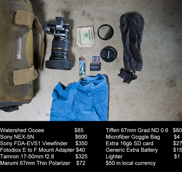 I'm using for a typical day on the river shooting photographs.