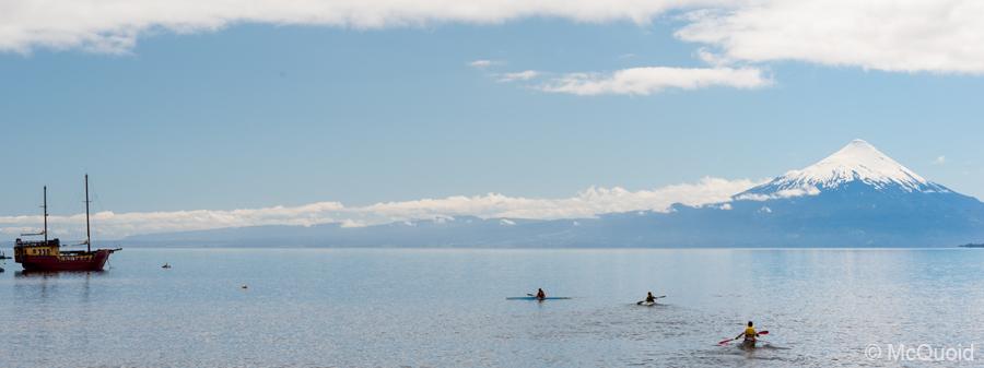 Fellow water enthusiasts enjoy a view of Volcan Orsono.
