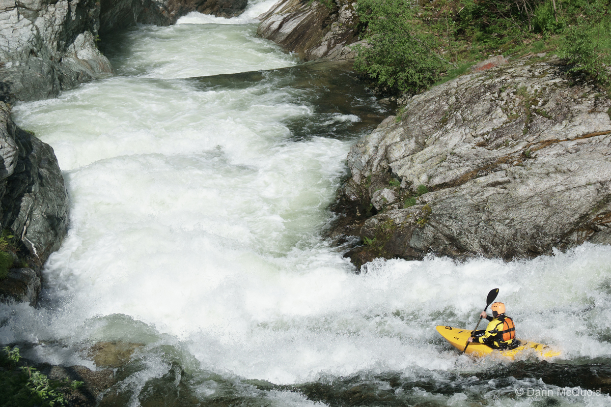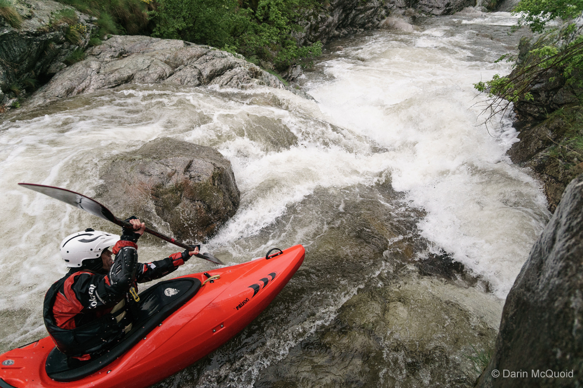 There is no warm up, we're straight into some low volume creeking but with good flow. Gerhard Braune on the first rapid.
