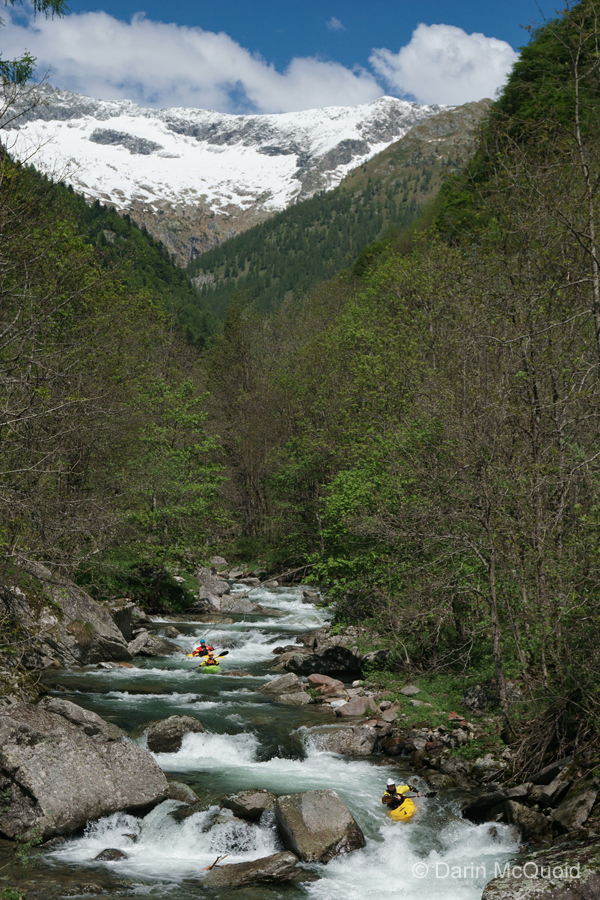 behind us has his kayak continue downstream. Rok Sribar lines up the