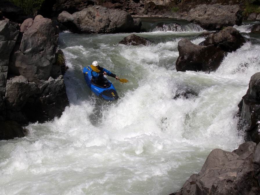 very narrow spots after it. Beware of one longer rapid with a pin spot