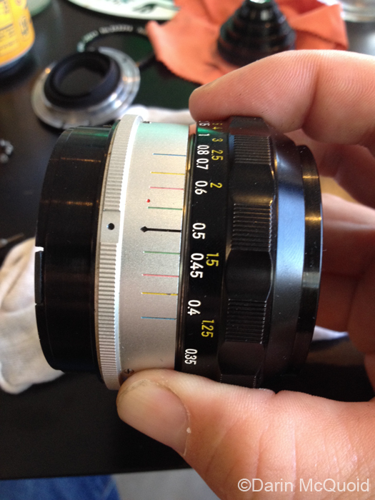 aperture screw, tighten the helicoid past infinity focus. Then back it