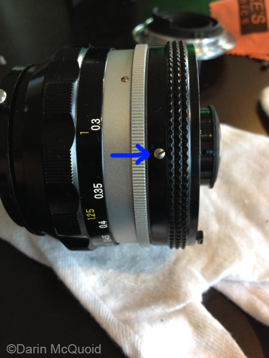aligned over the silver aperture screw. The aperture ring screw we took