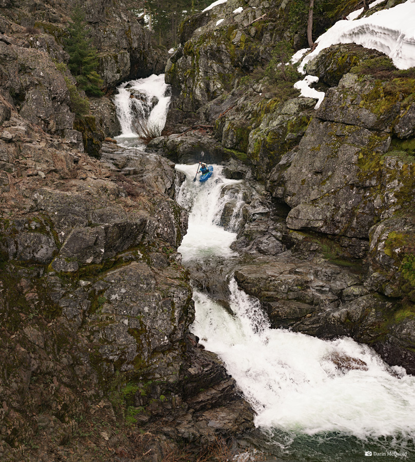 Downstream is a nice little set of slides into an eight foot ledge. Conner Herdt.