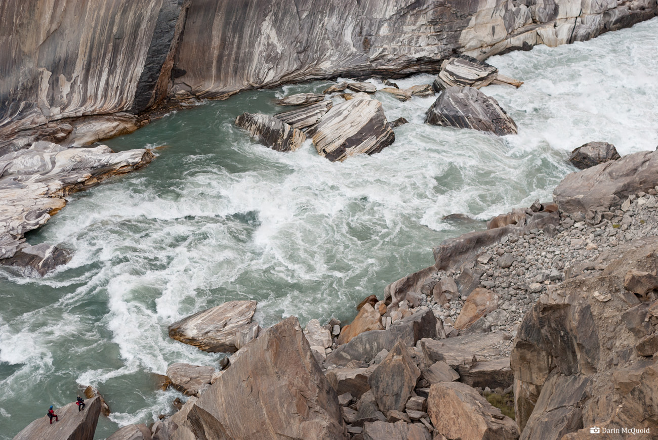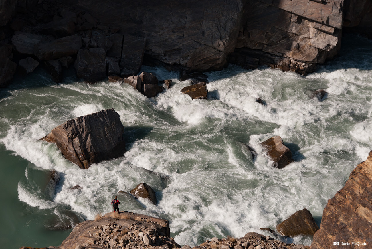 suspended over a colossal rapid. Blasting for a new road directly above