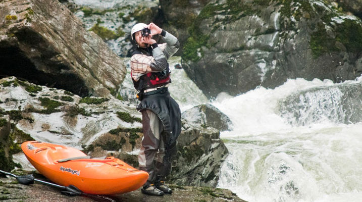 shot in whitewater kayaking. He continues to practice on the go while