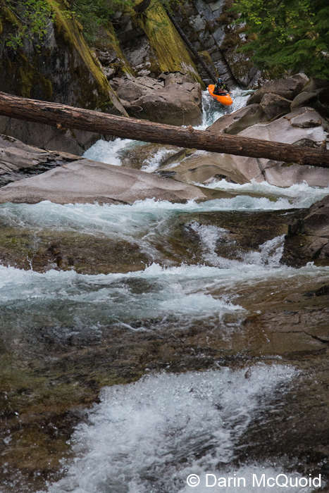 walk around a log choked rapid before a unique cascade. It's a true