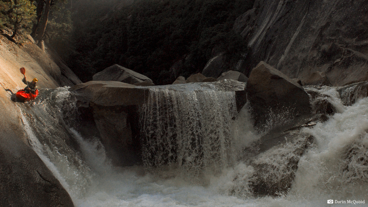 films from above. From a small eddy at the lip I peel out and drive