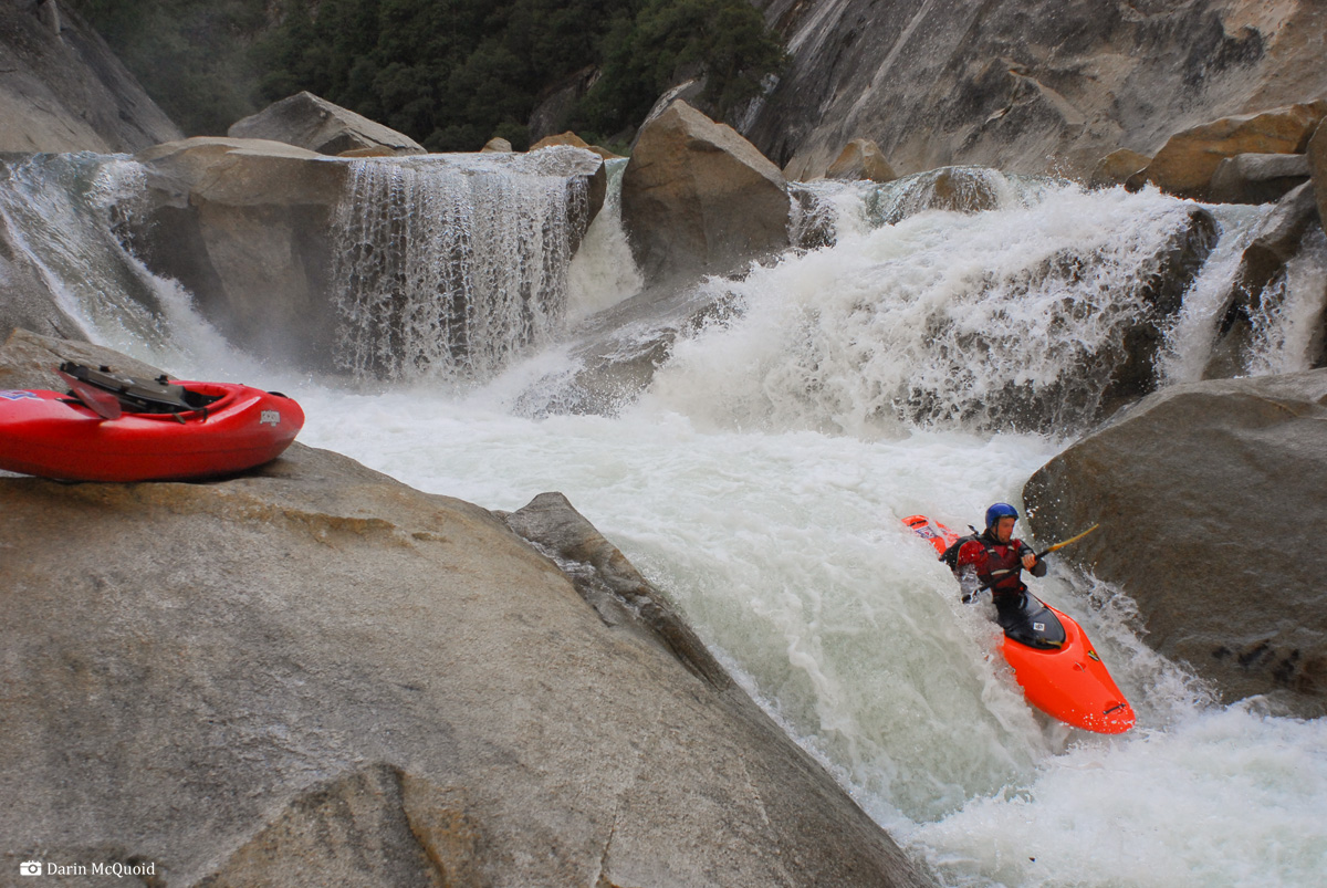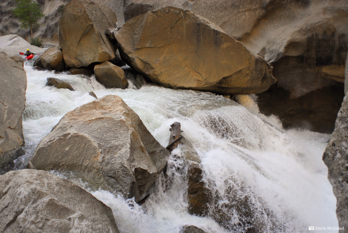 through two boofs, moving left, come down the slide and take an