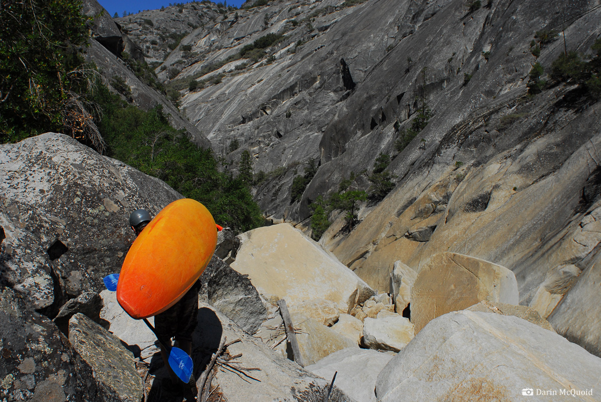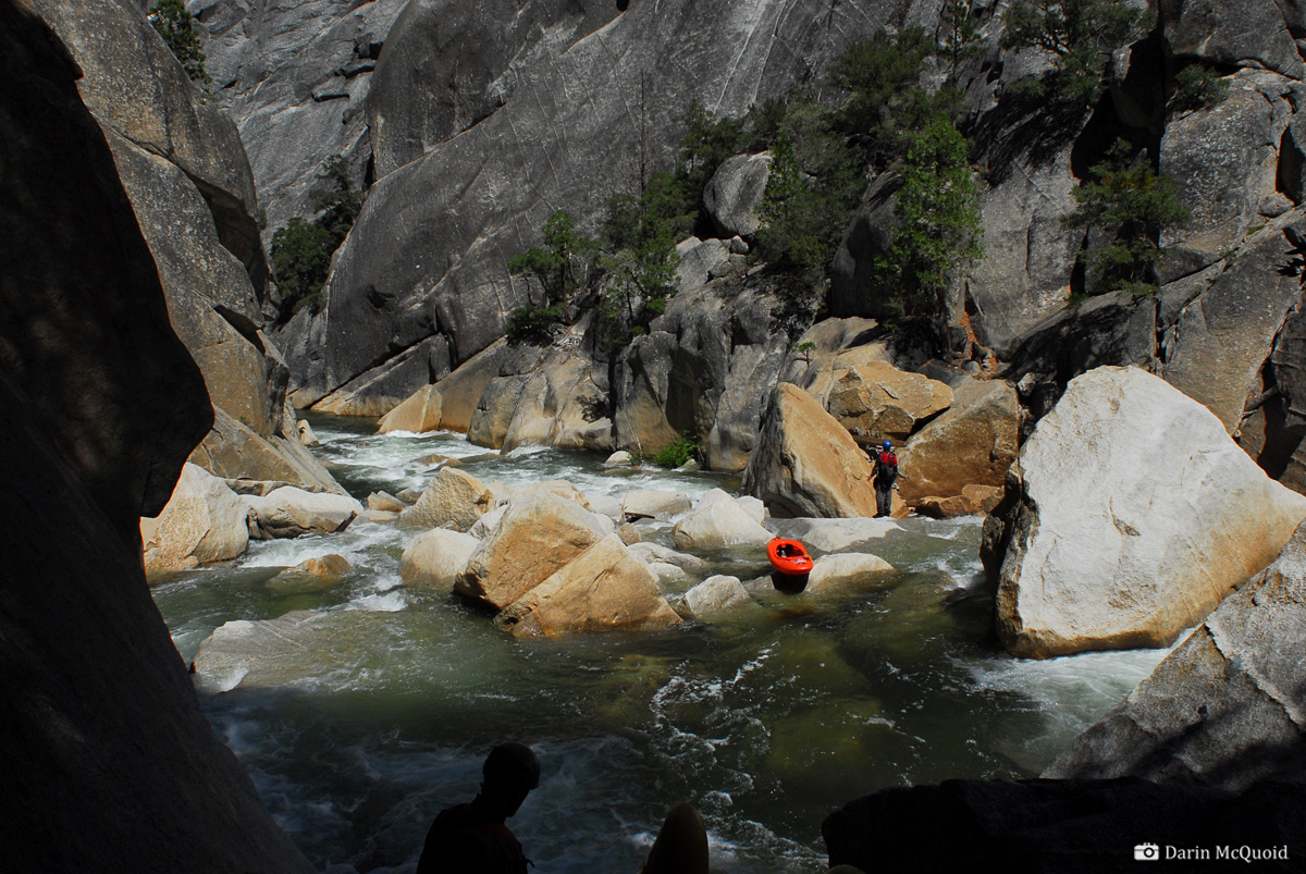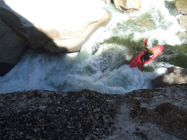 to climb high enough to scout the rapid. From above it's a