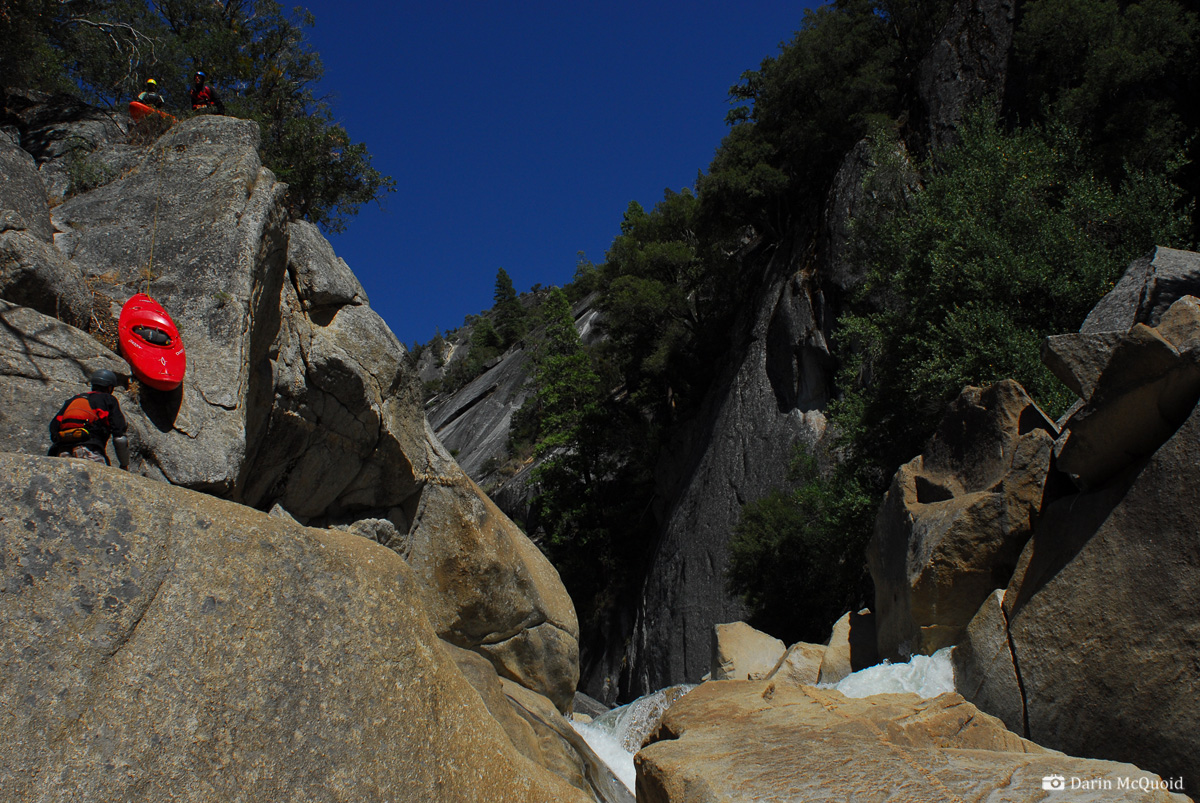 Team working hard lowering boats to get back into the gorge.