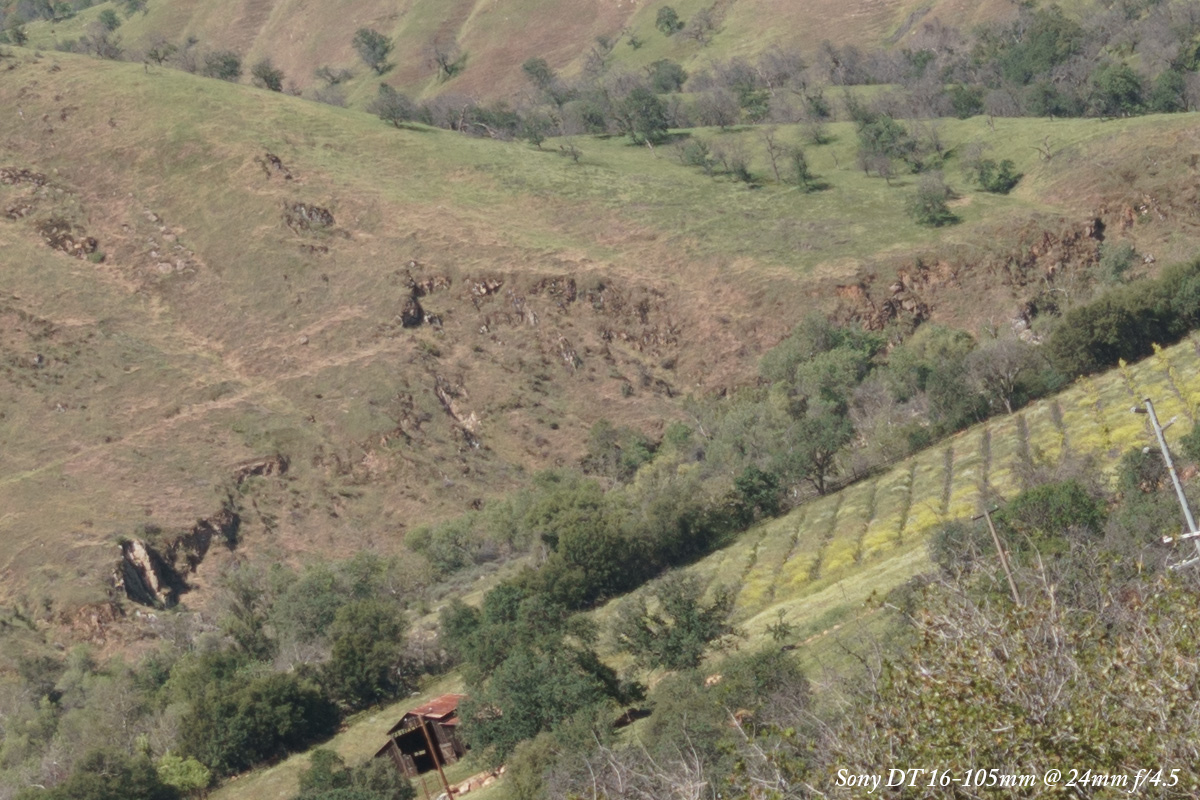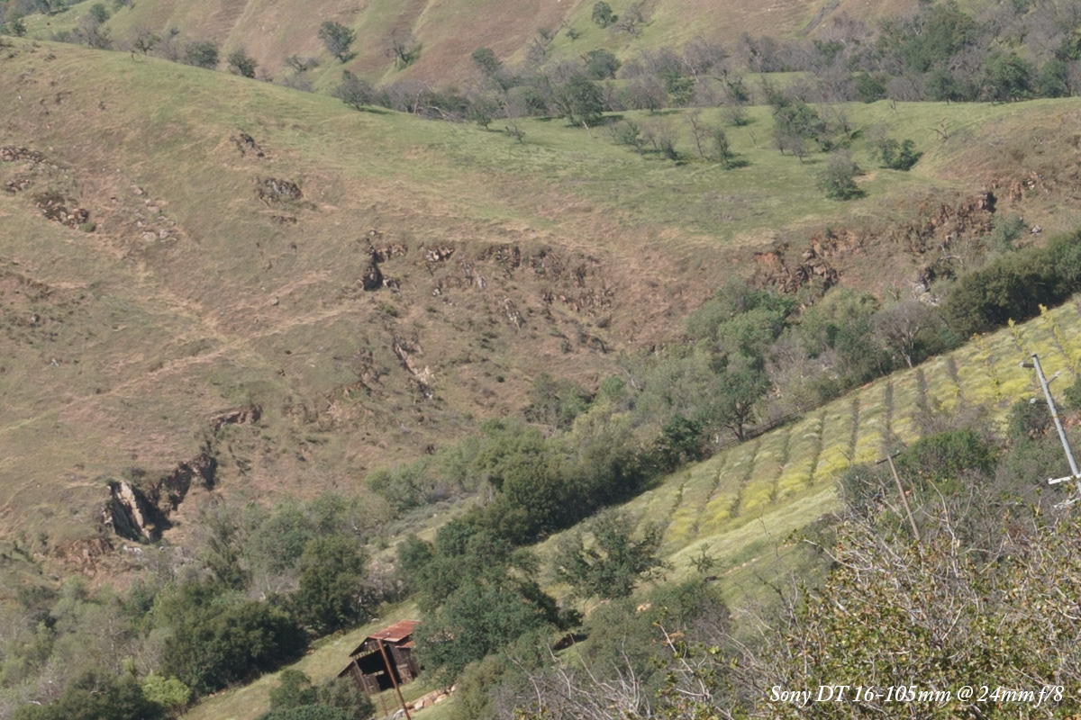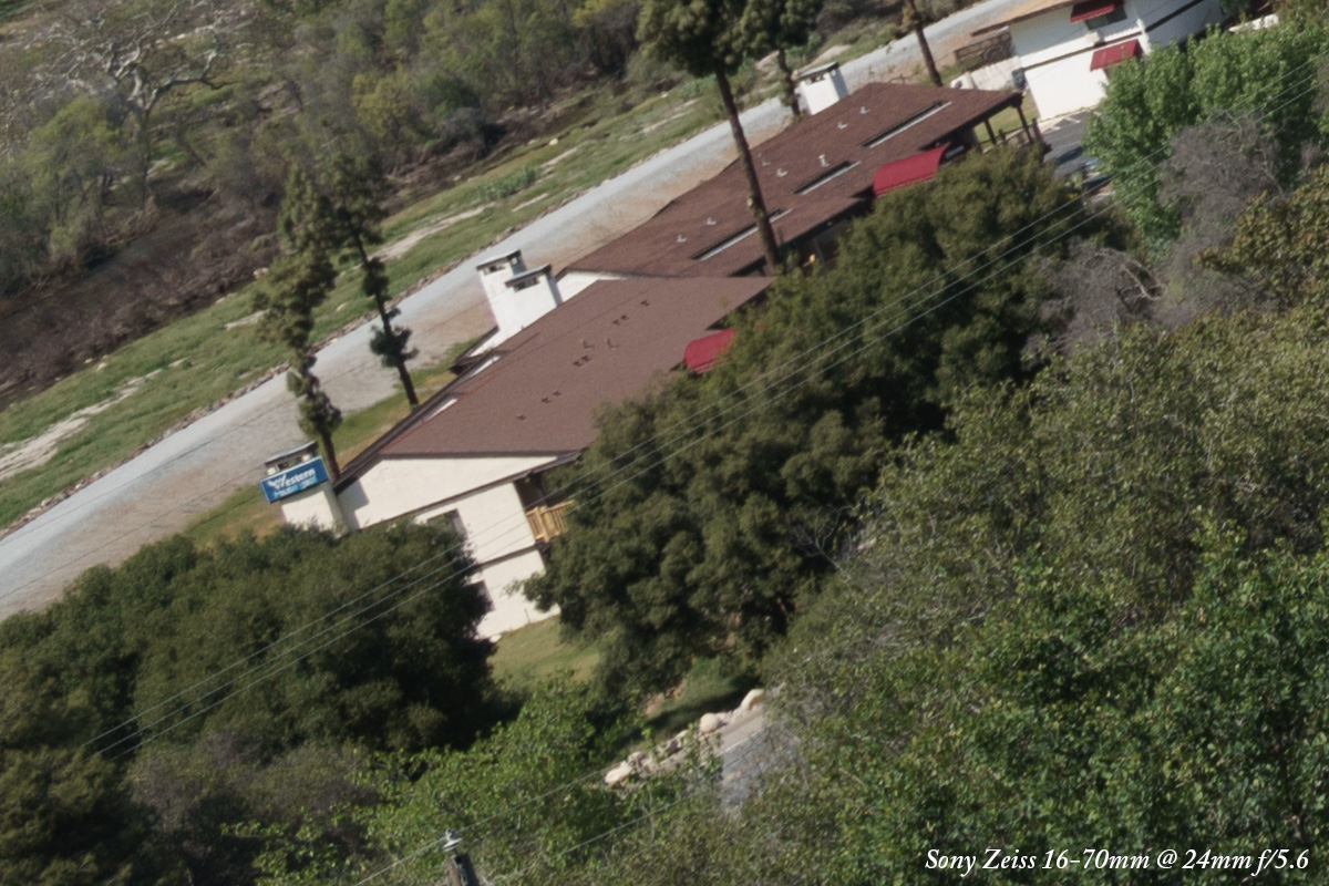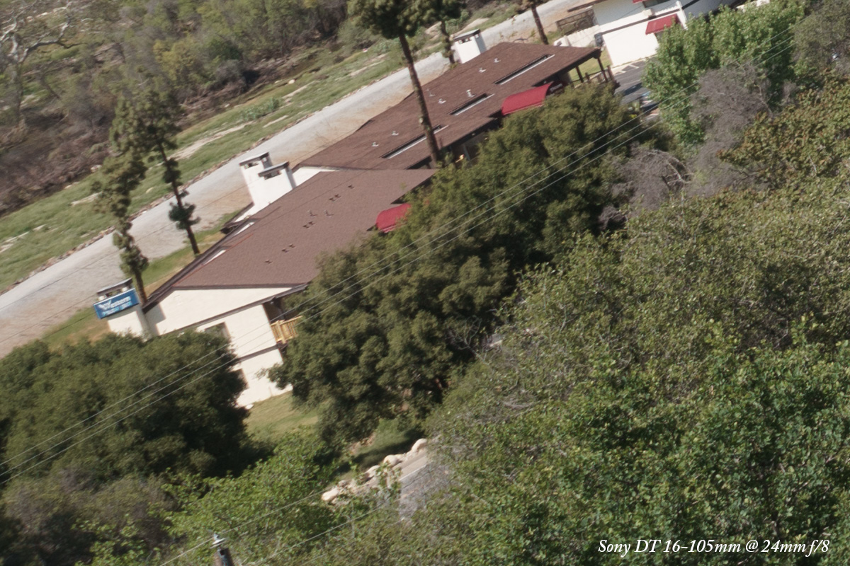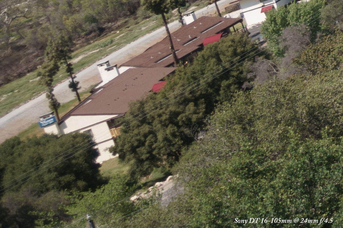 At f/5.6 there is no vignetting so we'll ignore the overall image, and see a drastic improvement with the Sony DT 16-105mm.