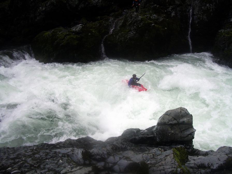 and dropped down the center, mistaking a rock to the right of the boof