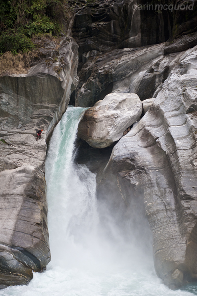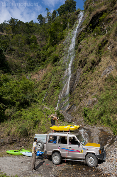 the day, so we grab our boats and climb down to below the falls.